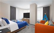 高楼层景观让您一览城市美景,房间内拥有1.8米睡床。采用美国“Hampton Bed®”标准的Serta双专利床垫和生态认证床上用品,为您打造云端甜梦体验。更宽敞的房间空间内,可移动办公桌和人体工学座椅共同组成灵活百变的办公专区,让您在免费无线网络下欢享高效差旅。55英寸高清液晶电视让您乐享精彩视觉体验。干湿分离的卫浴空间内提供的殿堂级医学品牌彼得罗夫的洗护用品和热带雨林花洒,有效洗去旅途中的疲惫。房间内配套了儿童用品,满足亲子家庭出行需求。